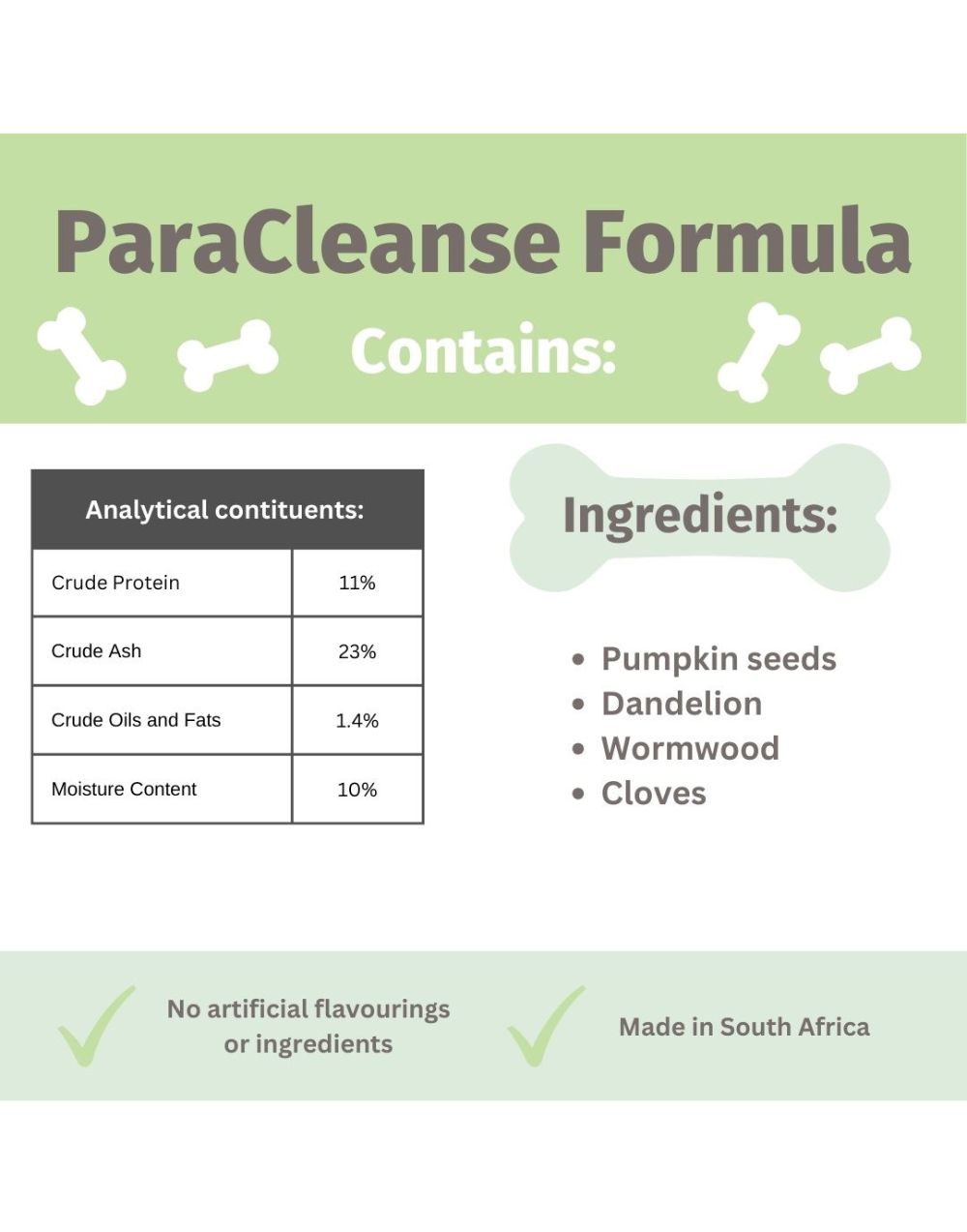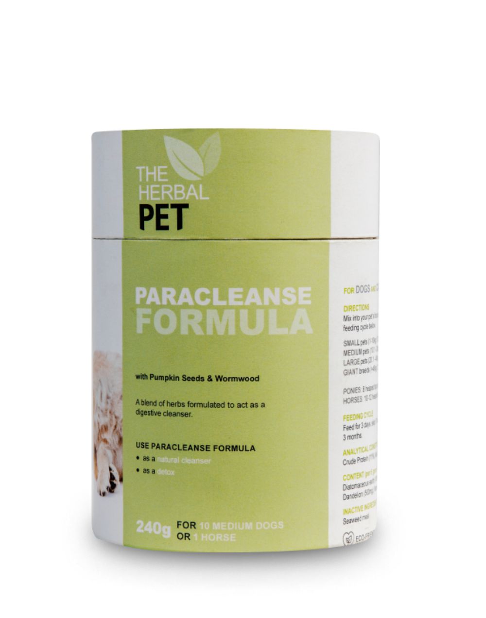 A natural pet supplement with Pumpkin seeds and Wormwood. This blend of herbs is formulated to act as a natural cleanser/dewormer for dogs, Not for cats.